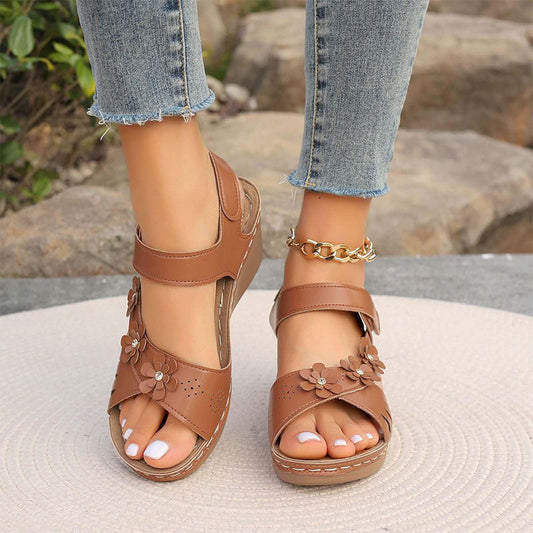 Elegante Sandalen mit schräger Sohle und Blumenmuster für Damen🌷🌷🌸